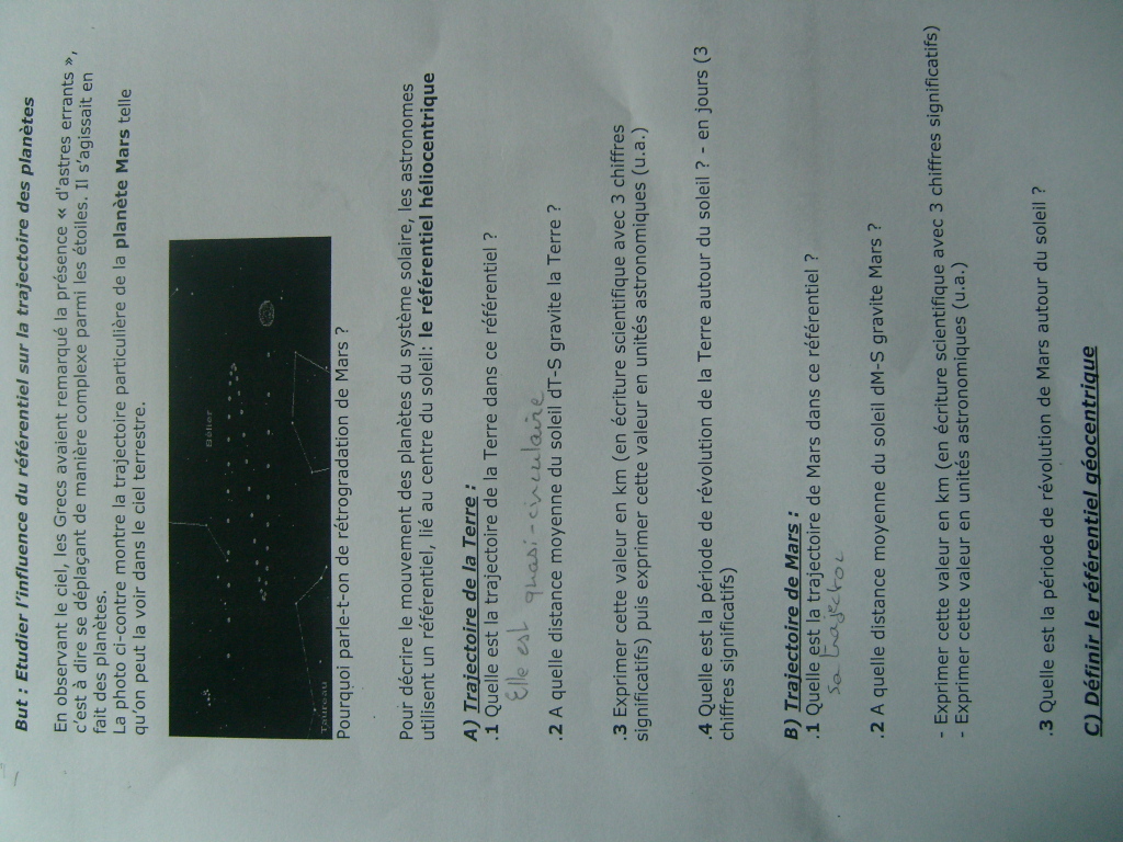 Sur le document 1, vous avez une échelle en ua. A partir de cette échelle, vous devez trouver la distance entre la Terre et le Soleil, puis entre Mars et le Soleil.
