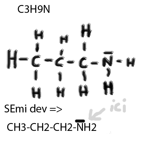 Mon professeur a demander une formule semi développer : j'ai écrit la formule correctement cependant j'ai ajouter un doublet non liant sur le N .(voir Image ci joint)