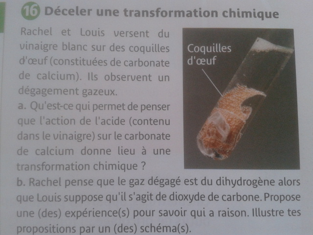 La présence d'un dégagement gazeux nous permet de penser que l'action de l'acide sur le carbonate de calcium donne lieu à une transformation chimique.