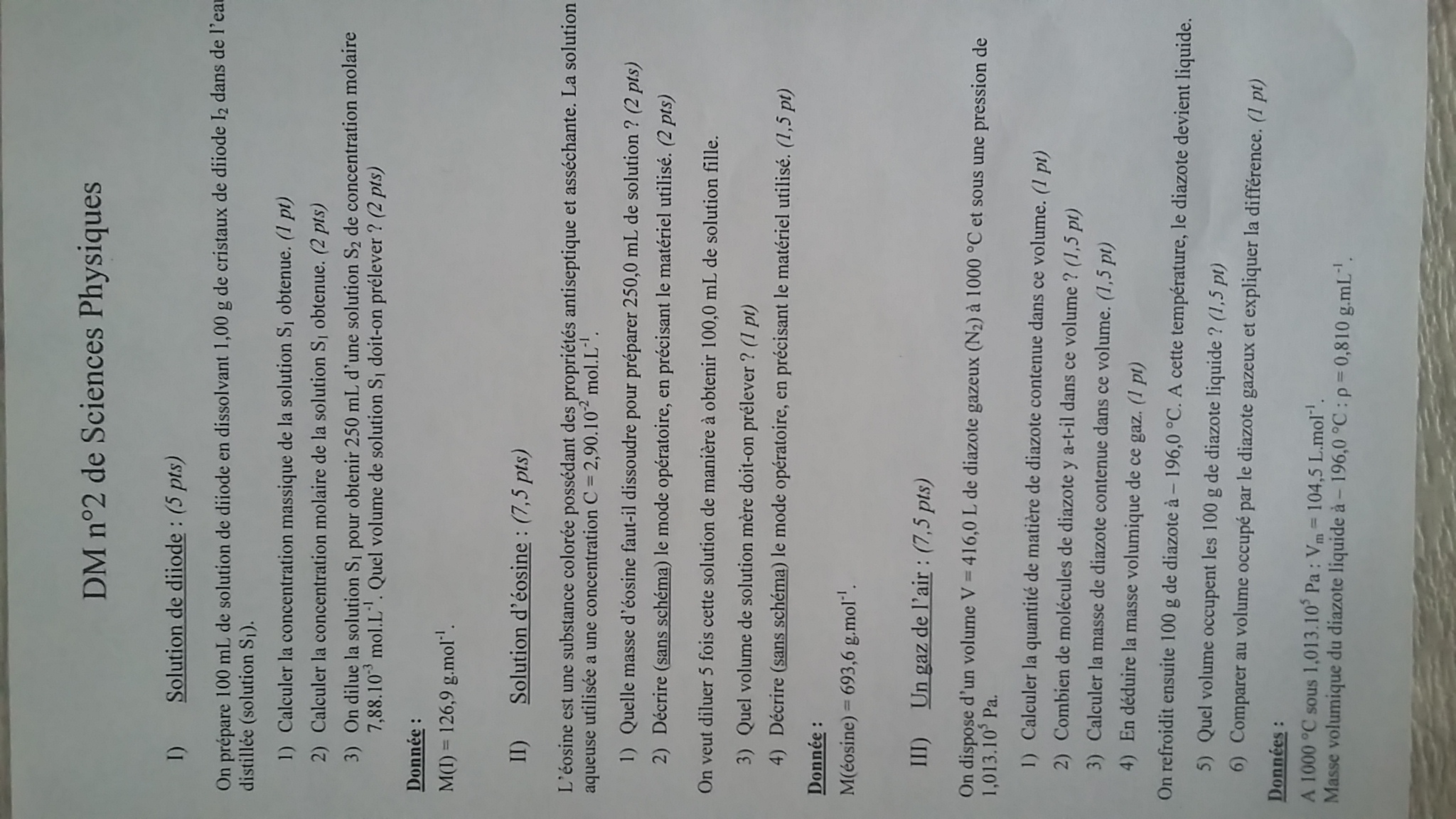 Devoir de physique chimie