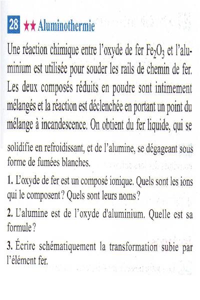 Tout d'abord je vous invite à lire la rubrique "A lire avant toute utilisation", vous y verrez que nous ne sommes pas la pour faire l'exercice à votre place mais simplement pour vous aider sur un point précis qui vous pose problème. Ce n'est pas en annonçant que "je comprend rien" que vous nous aidez à cerner votre problème. Savez-vous ce qu'est un atome ? un ion ? une réaction chimique ? tout cela a d'ailleurs été étudié en collège en classe de Troisième en particulier.