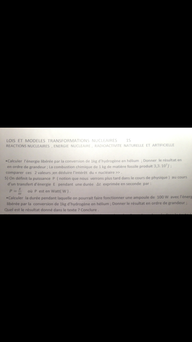 Je suis perdue parce que je dois chercher l'énergie libérée par la conversion de 1kg d'hydrogène en hélium. J'ai effectué le produit en croix: http://sgbd.ac-poitiers.fr/sosphysique/ ... 3bef5737a9