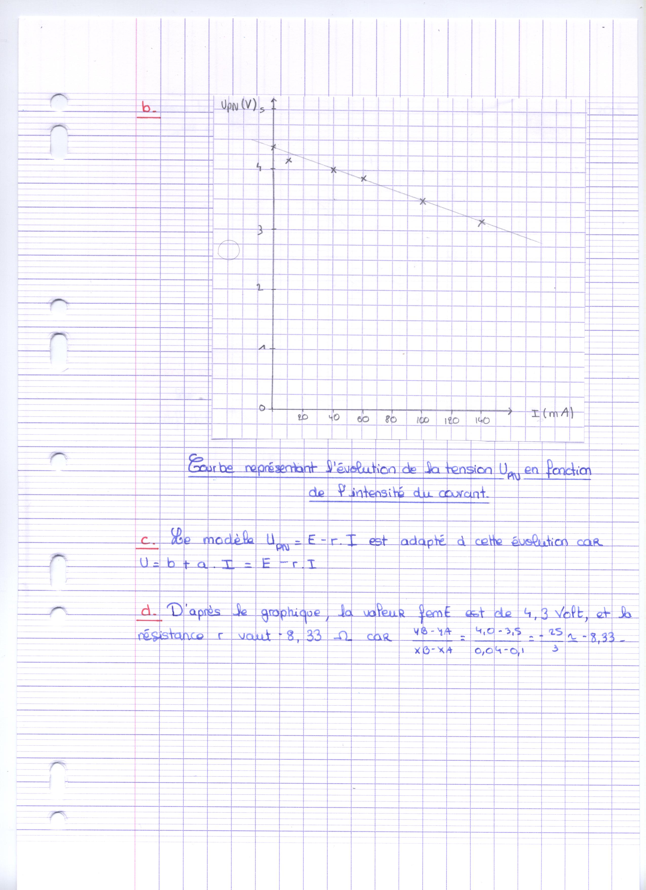 Votre équation que vous aviez trouvé était U = 4,3 - 8,33 I !
