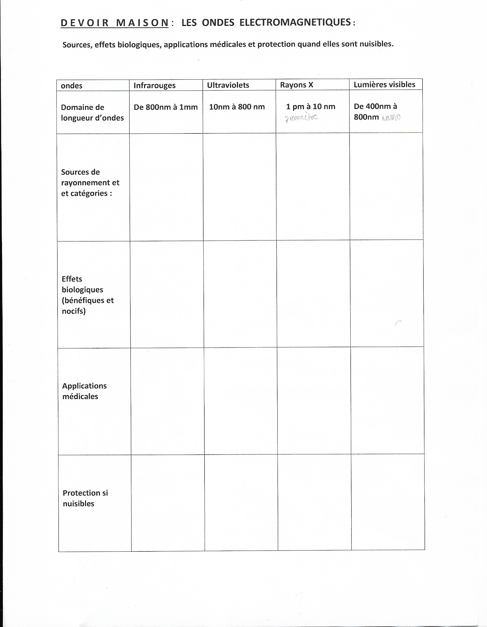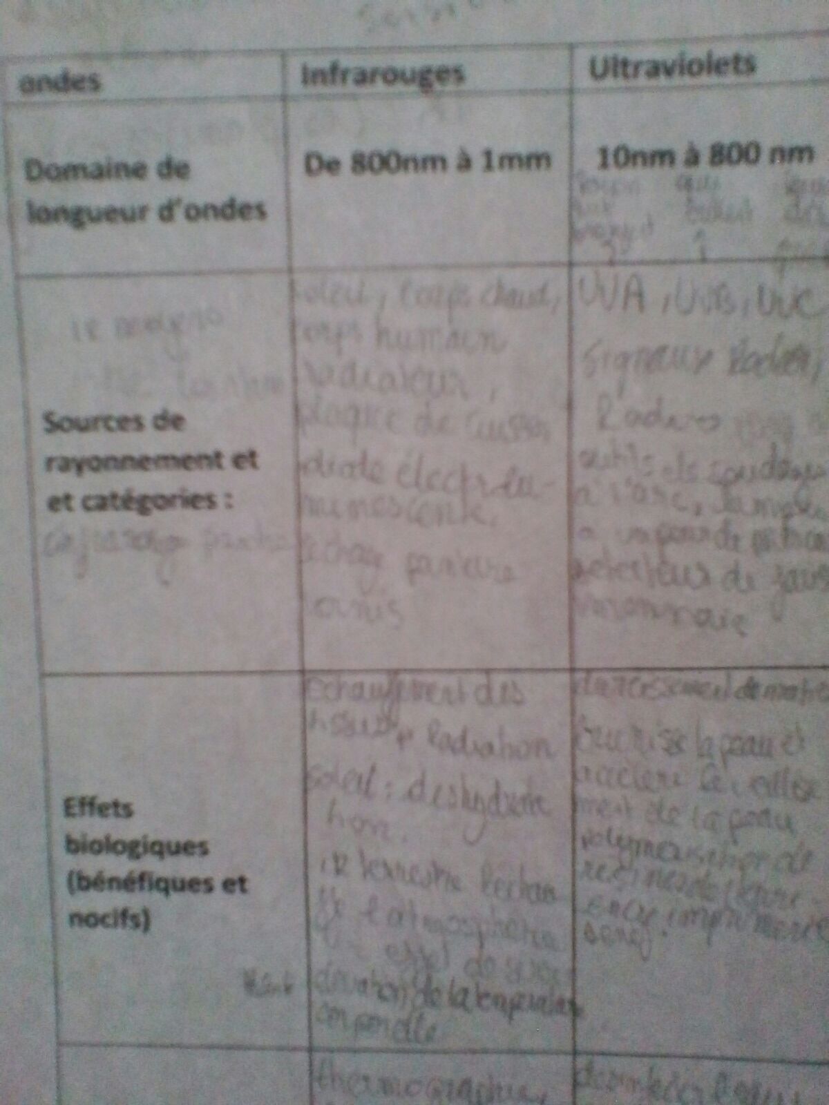 En revanche deux remarques : nm sont des nanomètres et non des namomètres comme j'ai cru le voir écrit. Deuxième remarque, les UV vont de 10nm à 400nm, et non à 800 nm puisque de 400 à 800 nm ce sont les ondes visibles.