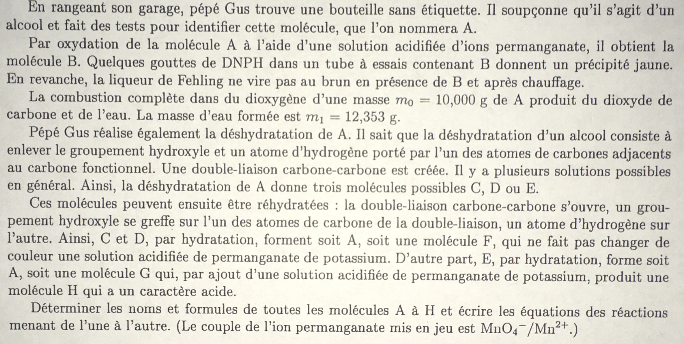 Essayer de voir ensuite quelle est la classe d'alcool correspondante vu les produits formés lors des oxydations.
