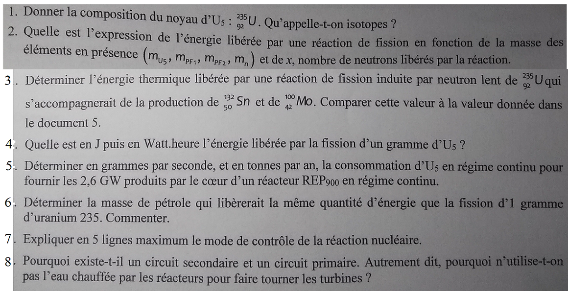 Doc 5 : énergie moyenne libérée par une réaction de fission = 2,860.10^-11 J.