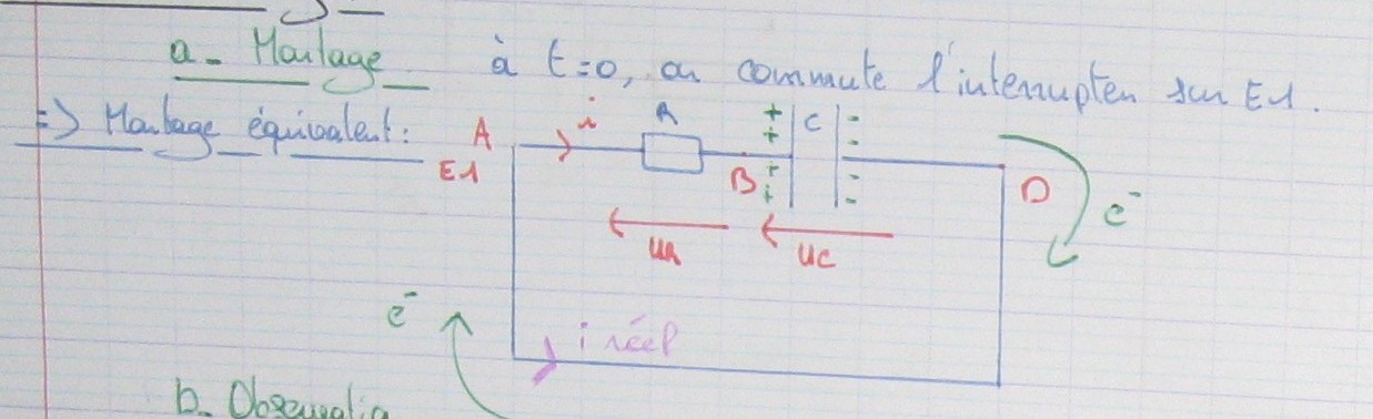 A ce niveau là j'en suis resté à i, en charge qui va de la borne + vers la borne et les e- venant de la borne - du générateur charge l'une des armatures du condensateur négativement donc par polarisation l'autre se charge positivement et je maîtrise aussi les conventions générateurs/récepteurs.