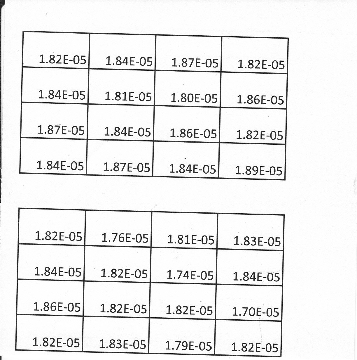 Je suis d'accord pour l'intervalle même si, pour les incertitudes, on préfère arrondir prudemment en élargissant l'intervalle plutôt qu'en le réduisant de façon à s'assurer de conserver le niveau de confiance (donc [1,81.10^-5 ; 1,84.10^-5]. Cela ne change rien pour la suite. Le second intervalle que vous donnez est 2 fois trop large : la valeur 1,7.10^-5 ne sera pas arrondie à 1,8.10^-5 mais restera à 1,7.10^-5 (de même pour la valeur 1,9.10^-5). Pour la conclusion (même en revoyant votre intervalle) les mesures se trouvent toutes inclues : pourquoi en déduisez-vous qu'elles sont de mauvaise qualité ? Qu'espériez-vous comme résultat pour des mesures de bonne qualité ?