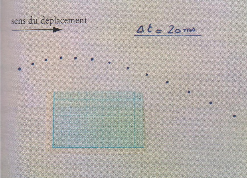 je vous met en piece jointe le scéma de l'exercice. J'aurais peut-etre dû commencer par là. C'est un enregistrement des positions d'un point d'un mobile au cours d'un déplacement.