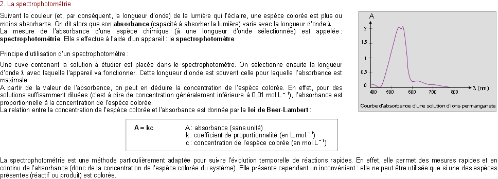 Pour le suivi des réactions, ils expliquent comment utiliser un spectrophotomètre en disant qu'on trouve la valeur maximale de l'absorbance. En pratique, si on a pas de courbe comme fourni ici , comment fait-on, on réalise tout un tas de mesures afin de déterminer l’absorbance maximale de la solution ?