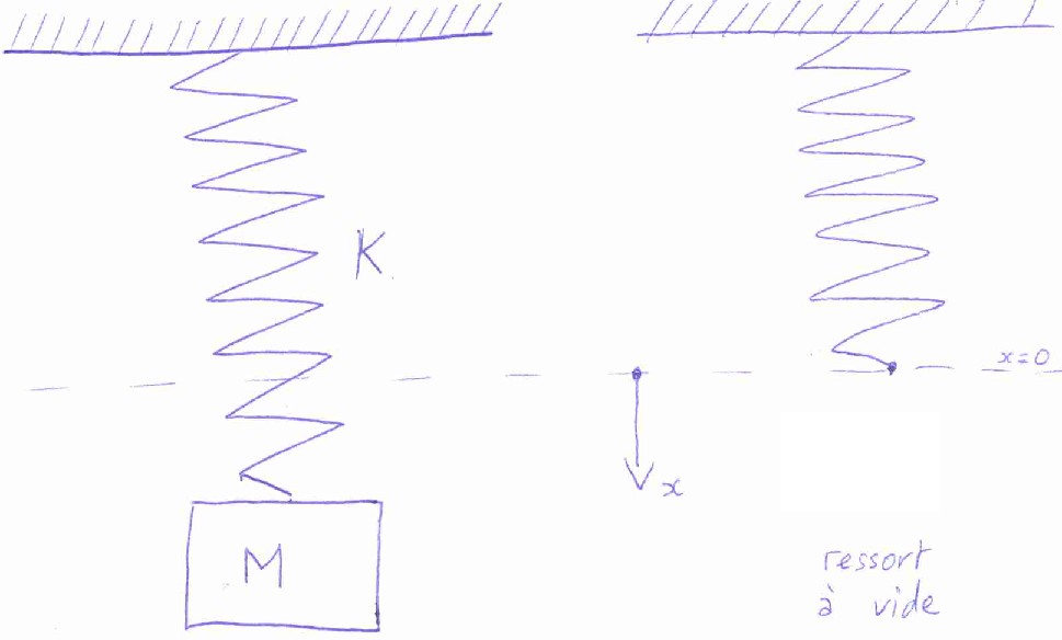Par exemple dans le cas d'une masse m suspendue à un ressort de masse négligeable et de raideur K.
