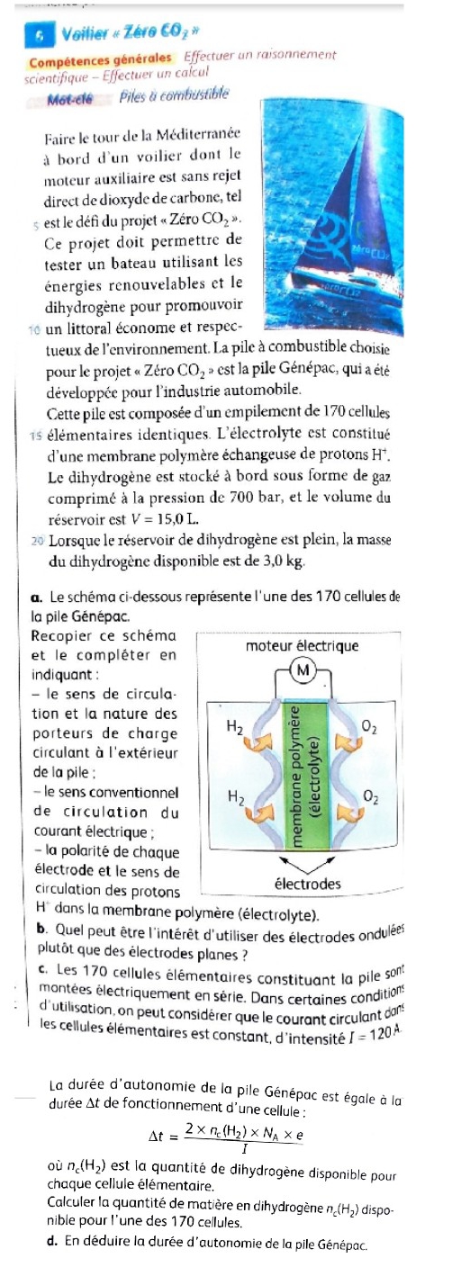 Quelle est la réaction globale de la pile à combustible vu le schéma ? Que font le dioxygène et le dihydrogène dans la pile? Quel est le composé formé?