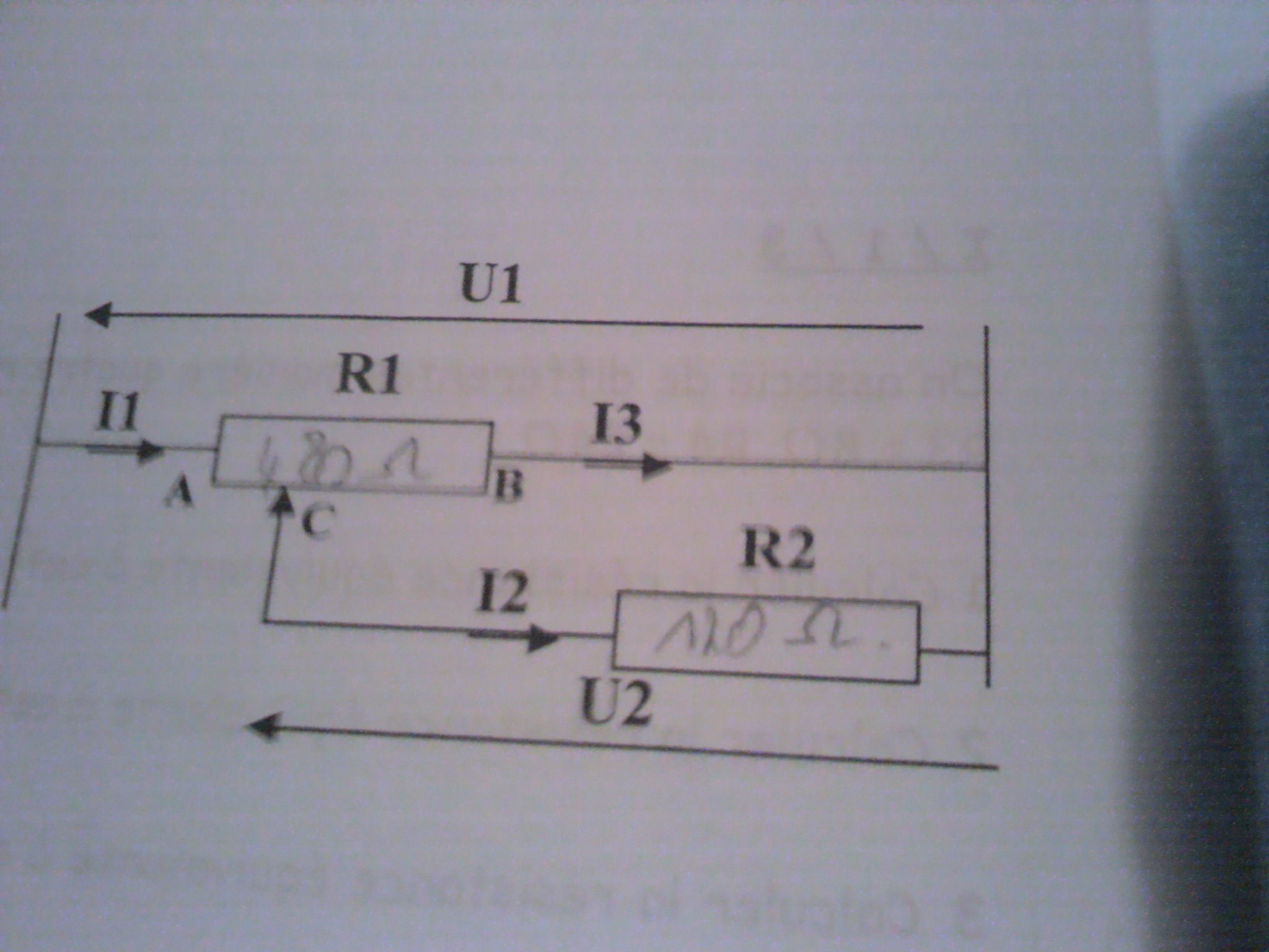 U1=240V, R1=480ohms, R2=120ohms