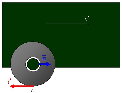 si la roue roule sans glisser , cela implique qu'elle est soumise à un frottement statique. il y a frottement statique lorsque la vitesse