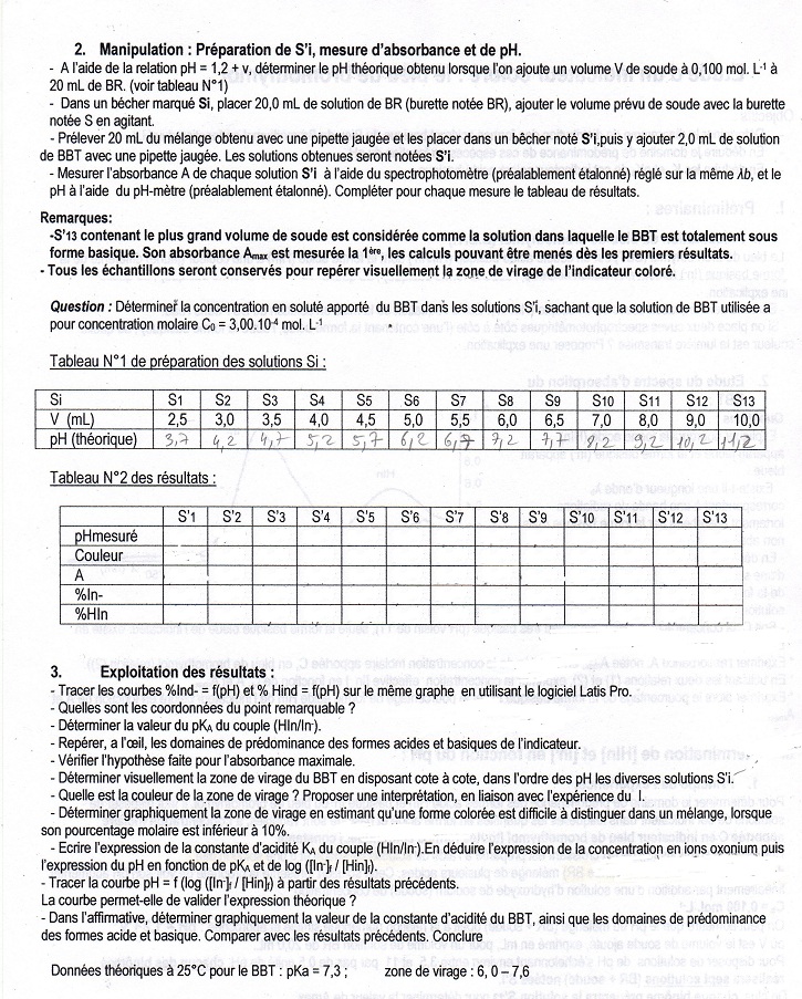 Bonjour j'ai un problème avec la question dans le II : Déterminer la concentration en soluté apporté du BBT dans les solutions S'i, sachant que la solution de BBT utilisée a pour concentration molaire C0=3,00.10^-4 mol/L