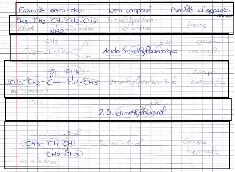Par exemple : la deuxième molécule fait partie de la famille des acides carboxyliques.