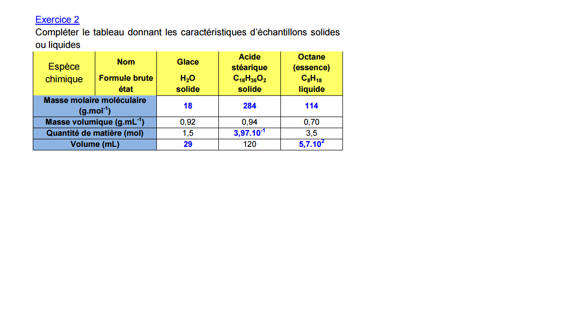 pour l'exemple de la glace j'ai additionné la masse volumique et avec la Masse molaire moléculaire puis j'ai essayé avec la Masse volumique mais impossible de trouver 29? merci de me donner la formule car je n'y arrive toujours pas.