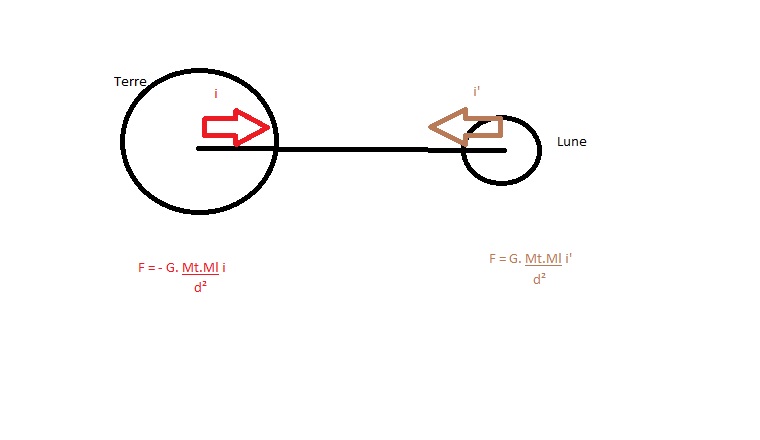 Maintenant, si vous avez compris, je voudrais que vous fassiez un schéma (terre, lune et force exercée par la terre sur la lune), que vous rajoutiez deux vecteurs unitaires, de sens opposés, et que vous exprimiez alors le vecteur force à l'aide d'un de ces vecteurs unitaires dans un premier temps, puis avec l'autre vecteur unitaire dans un deuxième temps. Puis vous nous envoyez ce schéma afin que l'on vérifie le tout.