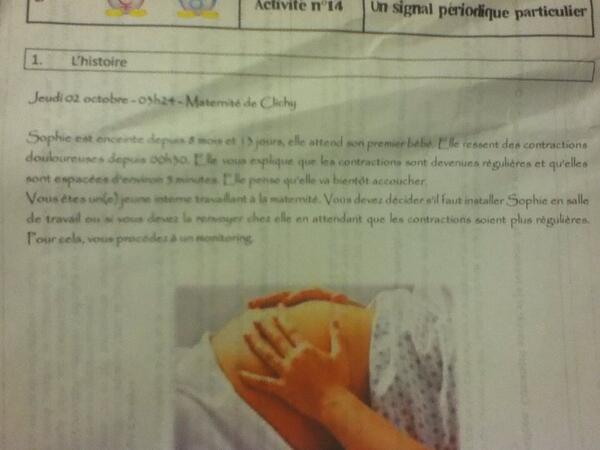 Les éléments à trouver sont du style : rythme cardiaque, rythme des contractions, 1er enfant ou pas...