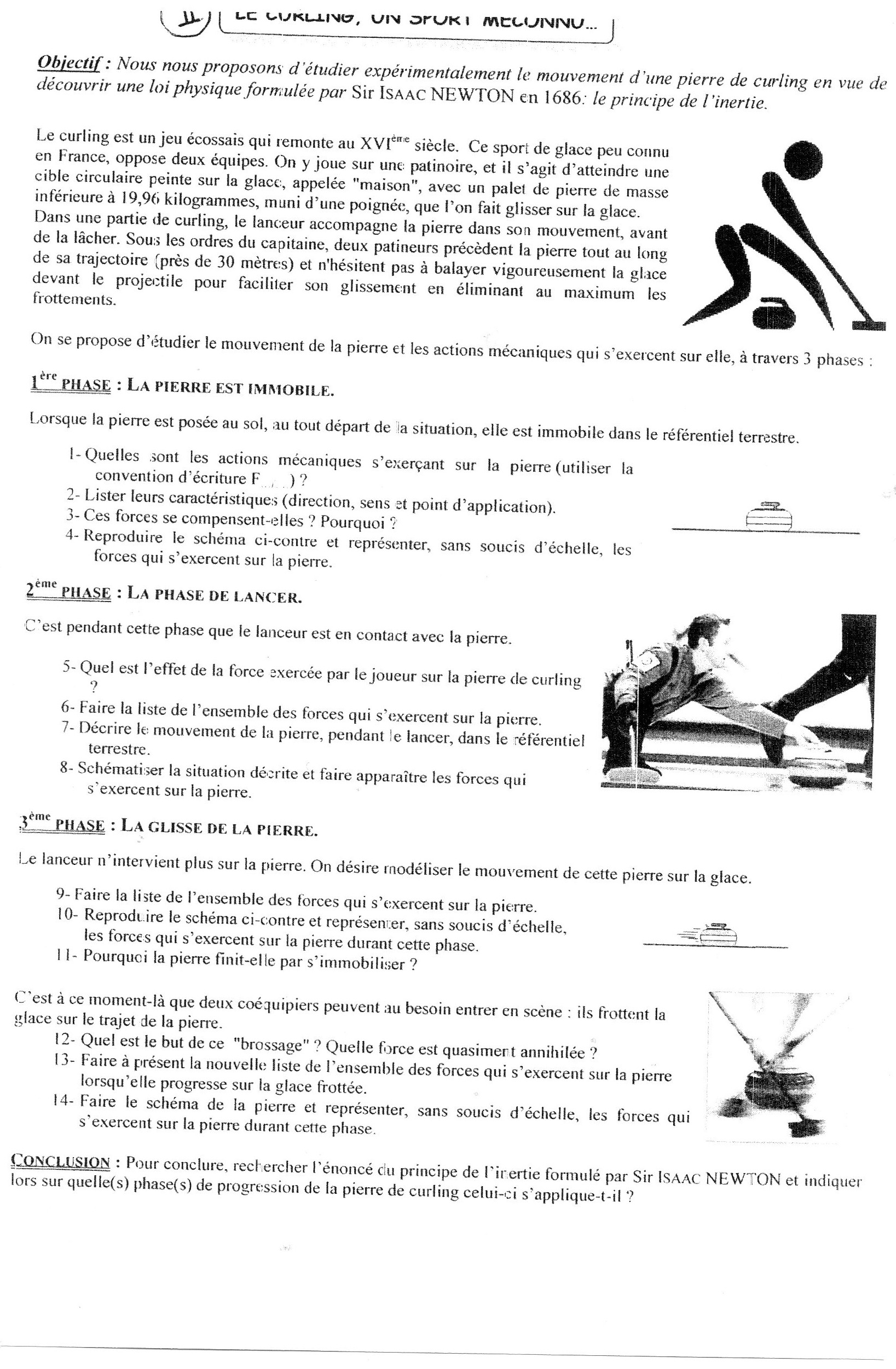 Remarque : pour la question 5 , il suffisait de dire que le joueur met la pierre en mouvement.