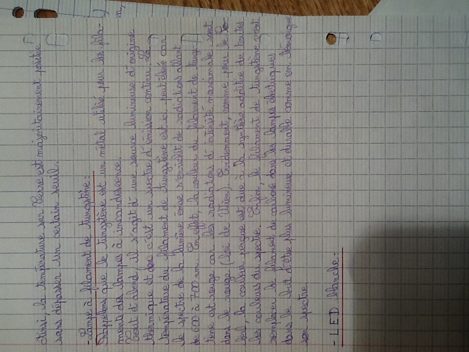 Si je mets concernant la lampe à filament de tungstène le paragraphe suivant (pièce jointe) est-ce cohérent et correct ?