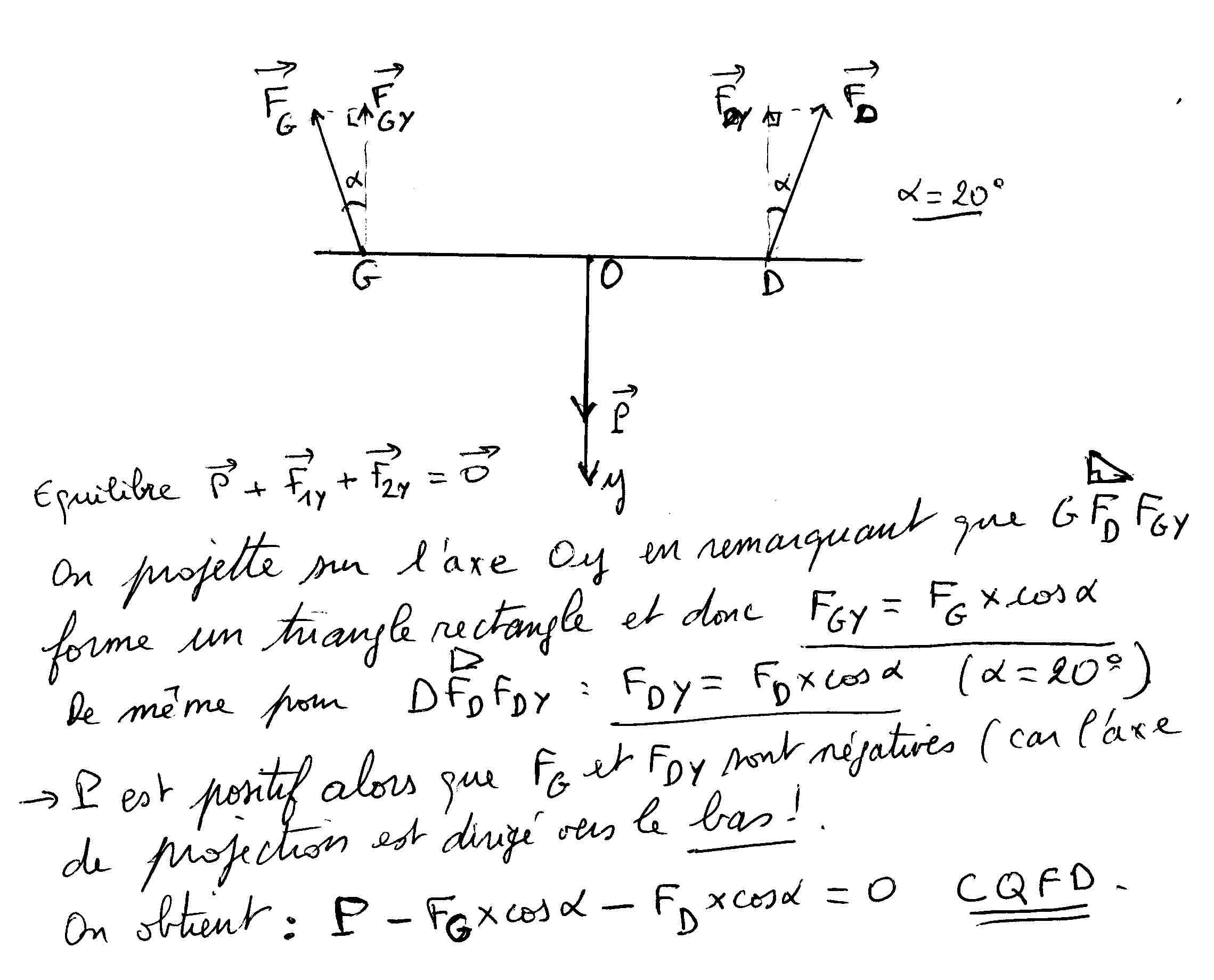 Pb_Fd.cos 20°-Fg.cos 20°=O <- je ne comprend pas ça !!! je ne voit pas pourquoi c'est comme ça....