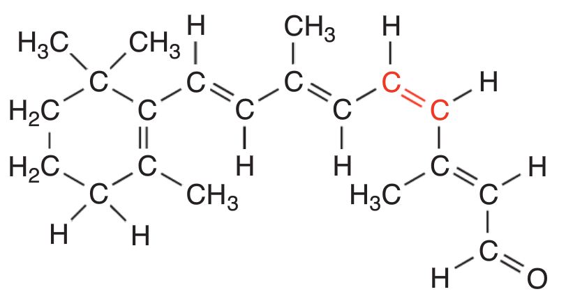 Oui, à ma connaissance. Voici un dernier exemple, celui que vous avez du voir en cours, le rétinal-11 ici en configuration Z qui présente une isomérie au niveau de la double liaison en rouge.
