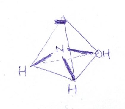 L'azote est au centre d'un tétraèdre, les 2 H sur deux sommets, OH à un autre sommet et le doublet sur le dernier sommet. Quel que soit le cas, on n'aura qu'une seule molécule.