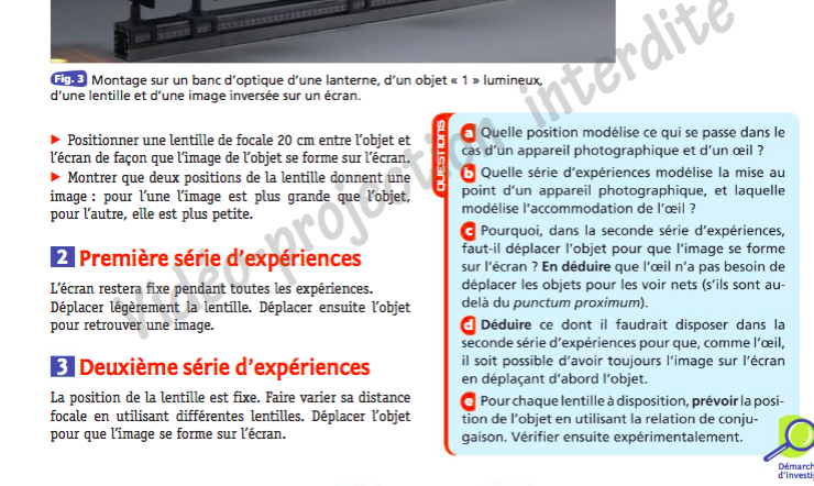 Yann "pour l'appareil photo, on fait varier la distance focale en modifiant la position de la lentille donc la première expérience correspond à l'appareil photo"