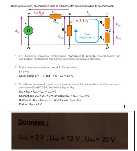 Il ne s'agit pas de "rendre cette tension négative" mais d'appliquer la définition d'une tension qui est une différence de potentiel électrique entre 2 points du circuit ou encore une différence "d'état électrique". Par conséquent UBC = potentiel électrique en B - potentiel électrique en C = V(B) - V(C) = 9V D'où UCB = V(C) - V(B) = -9V . V(..) étant la notation du potentiel électrique au point ...
