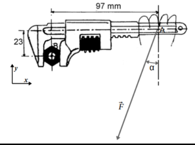 J'ai aussi calculer l'angle en A (dans le triangle rectangle ABC celui sur la clé à molette) ce qui m'a donné 13,12° (en utilisant le cos)