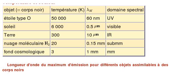 Mais vous êtes en train de me parler de la loi de Wien : loi qui permet de relier la longueur d'onde dans le vide de la radiation la plus intense à la température T en Kelvin \(T=\frac { cte }{ { \lambda }_{ max } }\). La précision longueur d'onde dans le vide permet d'éviter de prendre en compte le changement de la longueur d'onde quand les radiations se propage dans un milieu différents (la célérité dans le vide de toutes les radiations lumineuses ou autres est la même et vaut c = 299 792 458 m/s)