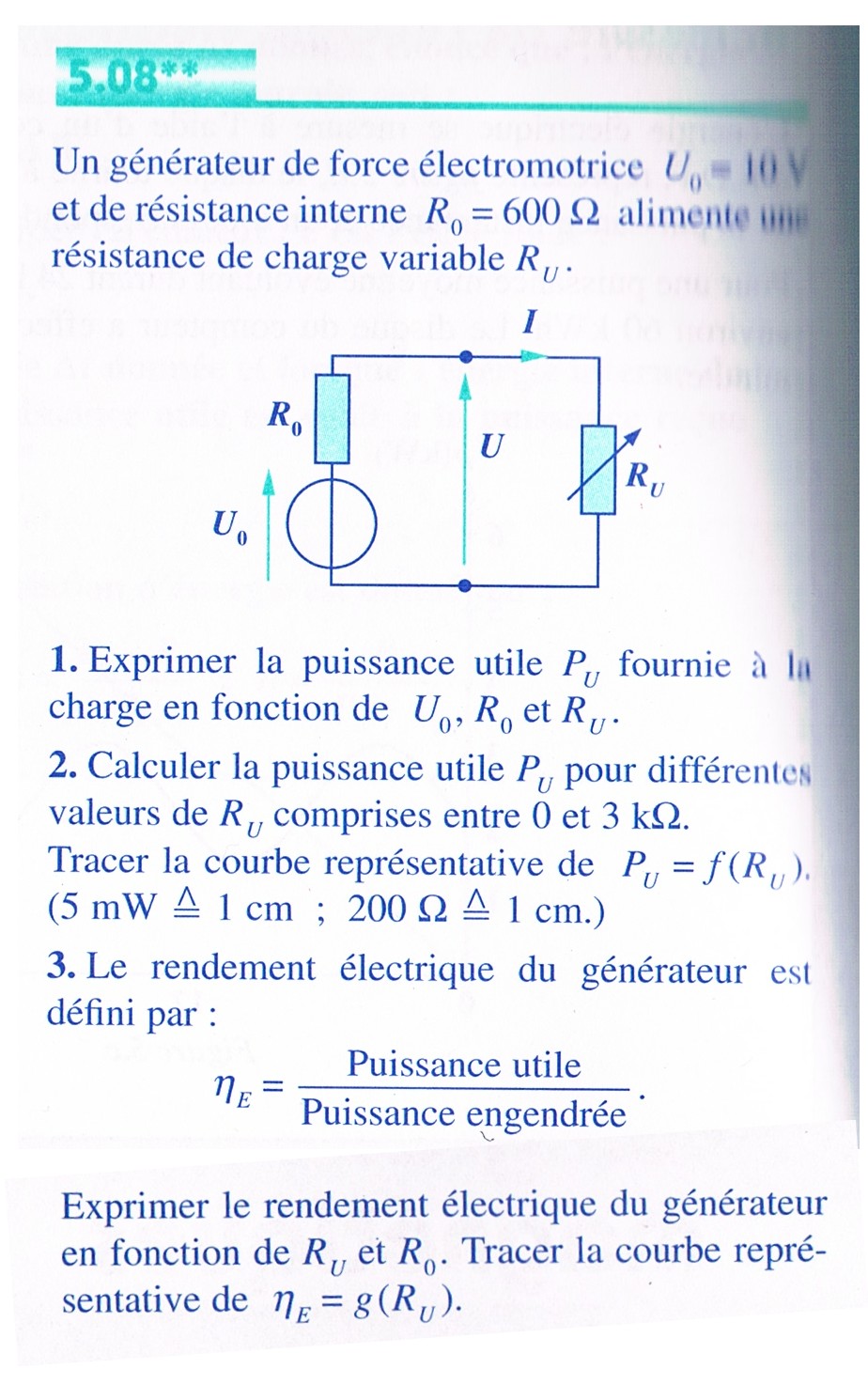 Pour commencer, cherchez dans votre cours la définition de la puissance utile fournie à la charge et regardez ce que vous donne l'énoncé.