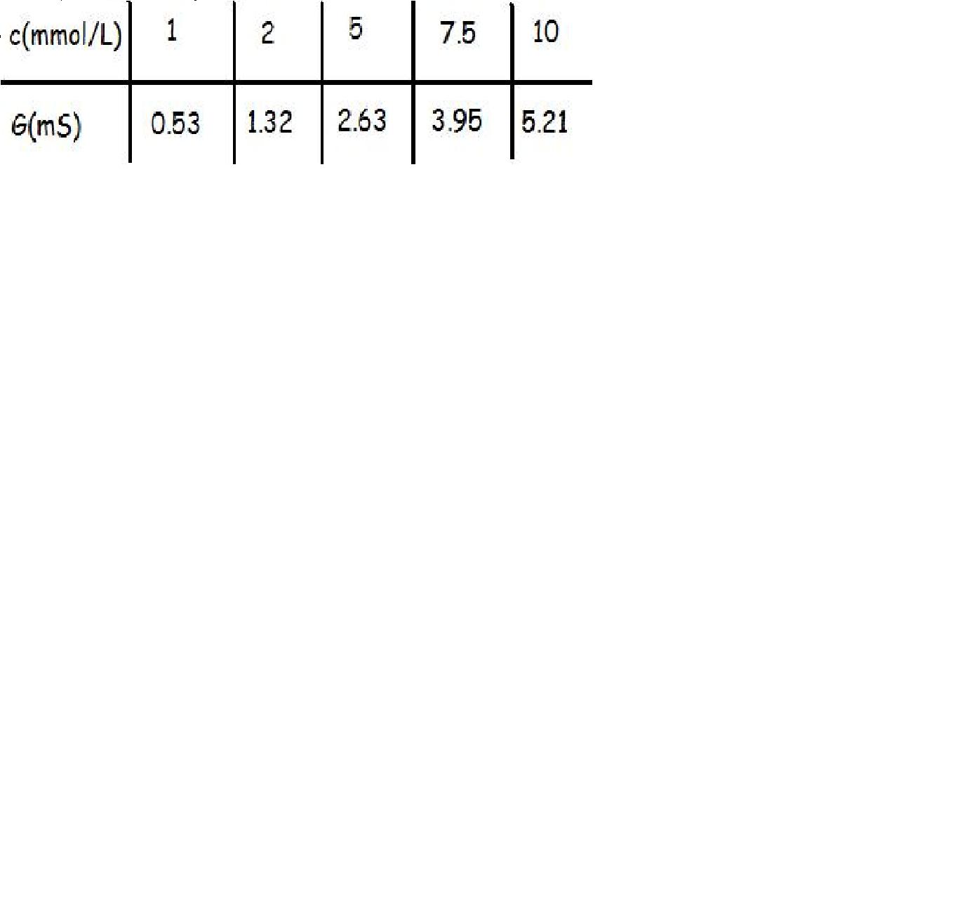 le tableau ci dessous donne la conductance de ces différentes solutions