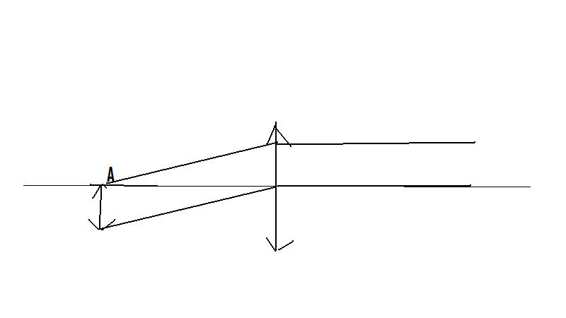 bonjour, schématiser une lentille convergente et un objet AB quatre fois plus petit que le diamètre de la lentille, placé perpendiculairement à l'axe optique, à une distance supérieure à la distance focale. A est situé sur l'axe.