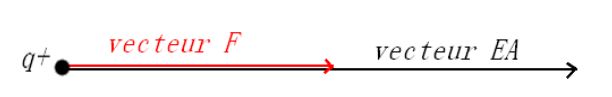 Donc comme q (charge test) es positive comment sont les deux vecteurs E et F ?
