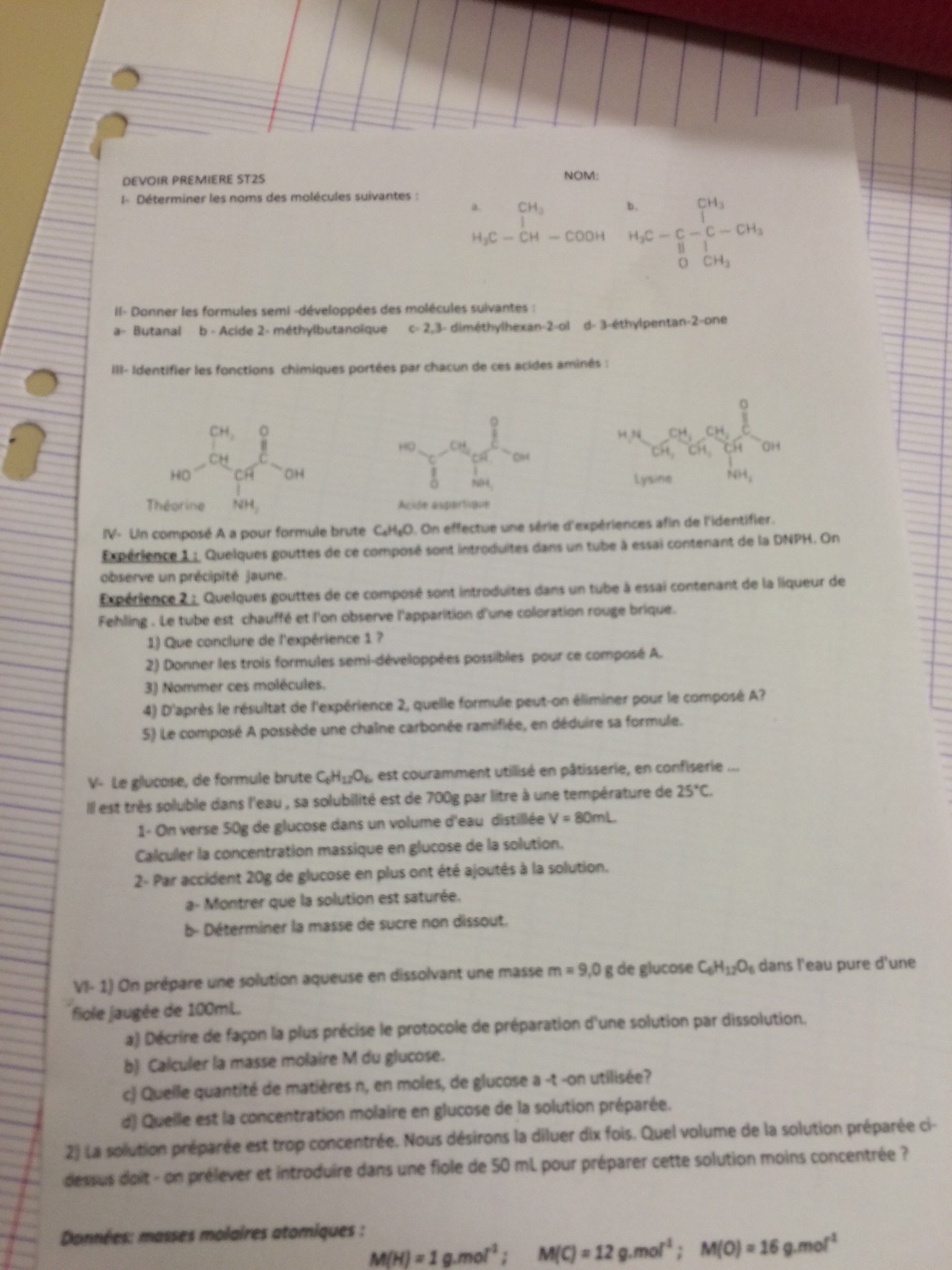 Pour l'exercice 1 vous devez dans un premier temps identifier les groupes caractéristiques portés par chacune des molécules,