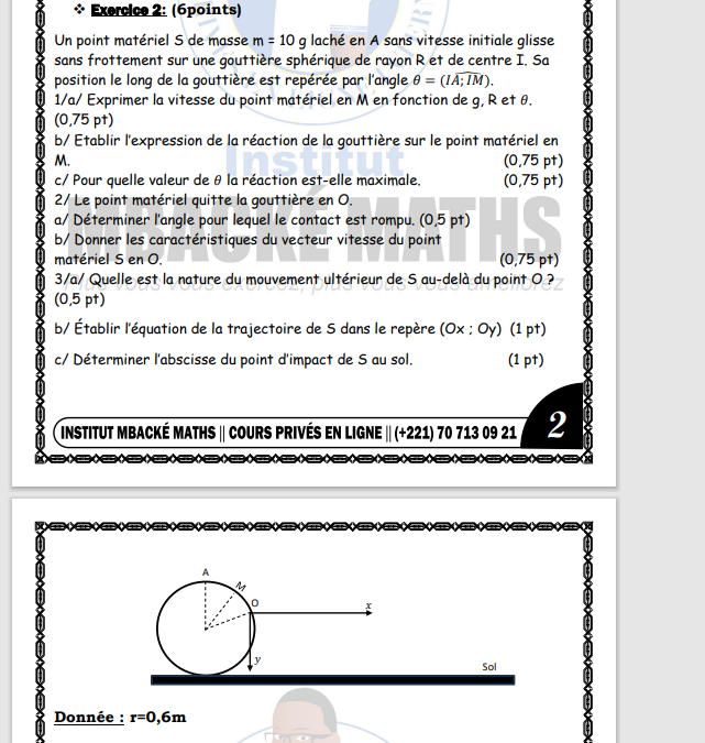 Vous devez tracer la trajectoire du point matériel à partir du point O jusqu’au sol.