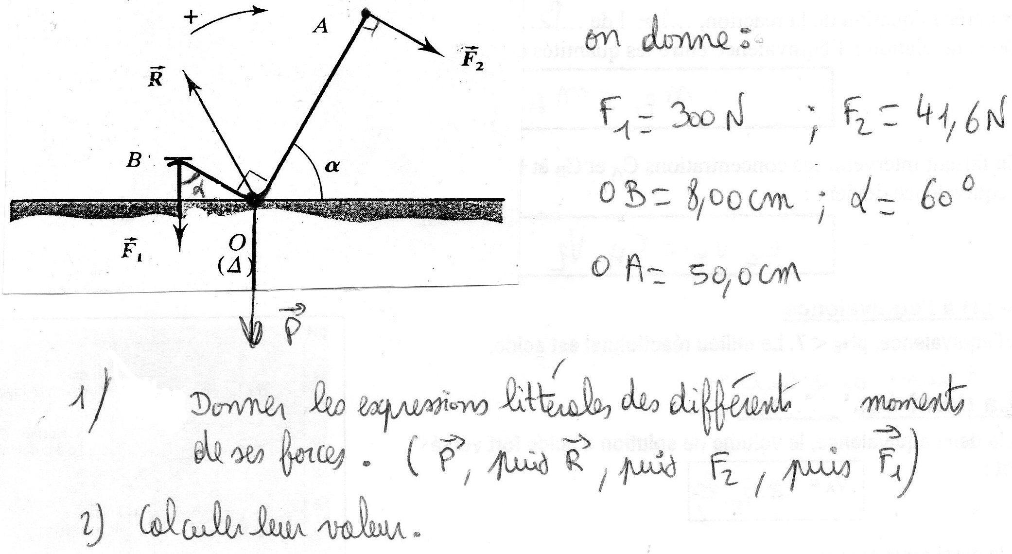 Le professeur nous donne des feuilles d'exercices. J'ai beau refaire les exercices, j'ai du mal à savoir si il faut prendre le sinus ou le cosinus pour calculer un bras de levier. voilà mon souci !