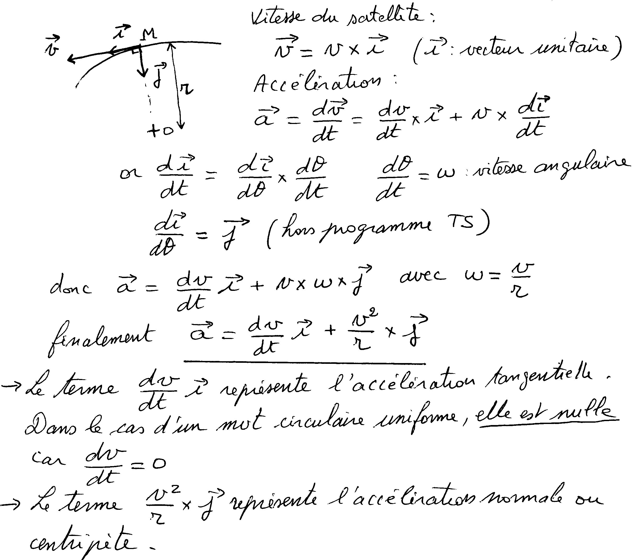 Sattelite, vecteur acceleration