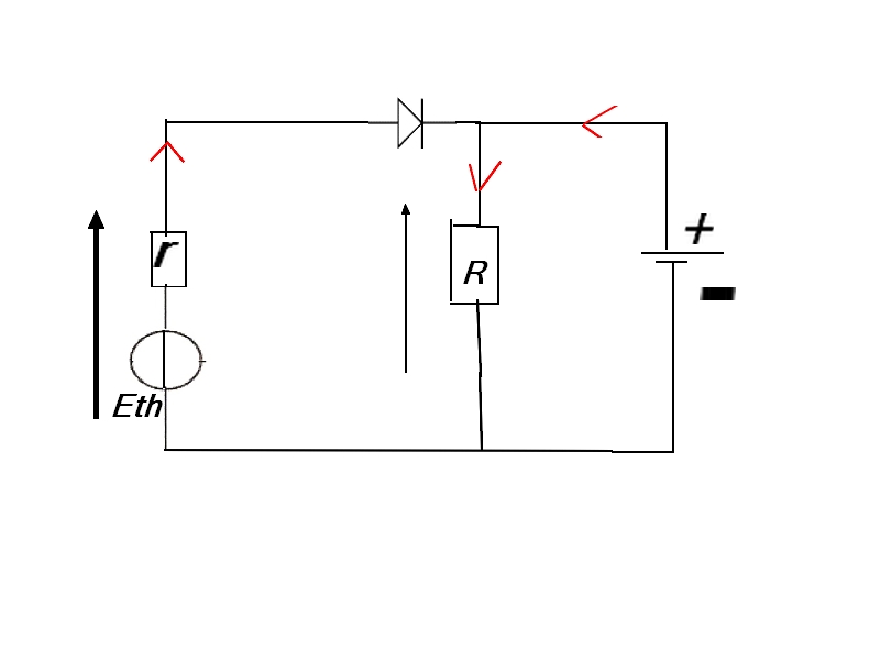 Si vous voulez, je dispose d'un générateur de Thévenin avec sa résistance interne r, d'une charge R, d'une diode et d'un autre générateur.
