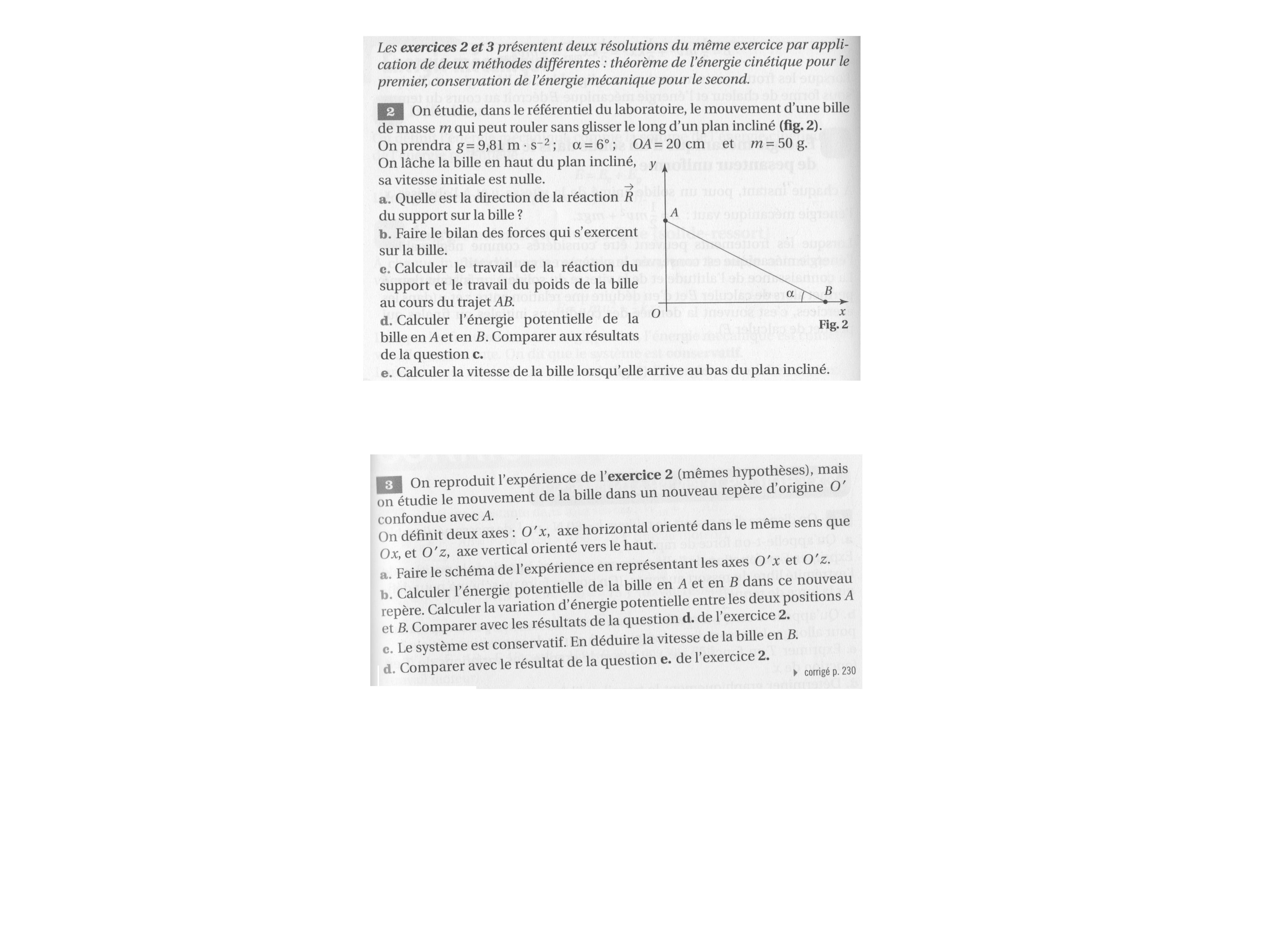 ( cela peut paraitre confu je vous joint donc les énoncés qui mon amené à ce probléme.Les exercices 1 et 2 sont les mêmes ,cependant leurs résolutions différent pour le 1 on utilise le théoréme de l'énergie cinétique et pour le 2 on utilise la conservation de l'énergie mécanique )