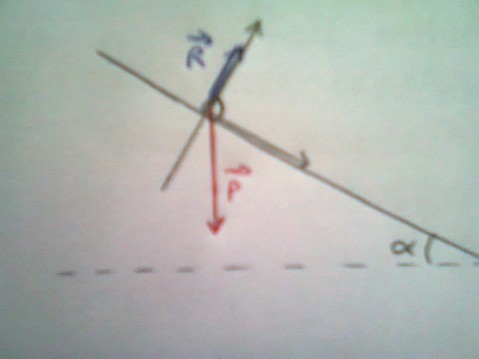 2)\(\sum Fext = m a_{G}\)<=> \(P+ R +f = a_{G}\) \(Psina+f=m\frac{dv_{x}(t)}{dt} <=> x(t)= \frac{1}{2} gsinat^{2} -\frac{1}{2}\frac{ft^{2}}{m}\) ; \(Pcosa+N=m\frac{dv_{y}(t)}{dt} <=> y(t)= \frac{1}{2} gcosat^{2} -\frac{1}{2}\frac{Nt^{2}}{m}\) ; \(0=m\frac{dv_{y}(t)}{dt} <=> z(t) = 0\)