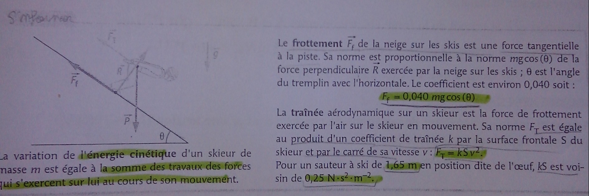 Au départ votre skieur est à une certaine altitude et a une vitesse nulle.En bas du tremplin il a une vitesse V à trouver et une altitude diminuée de 50 m il me semble.
