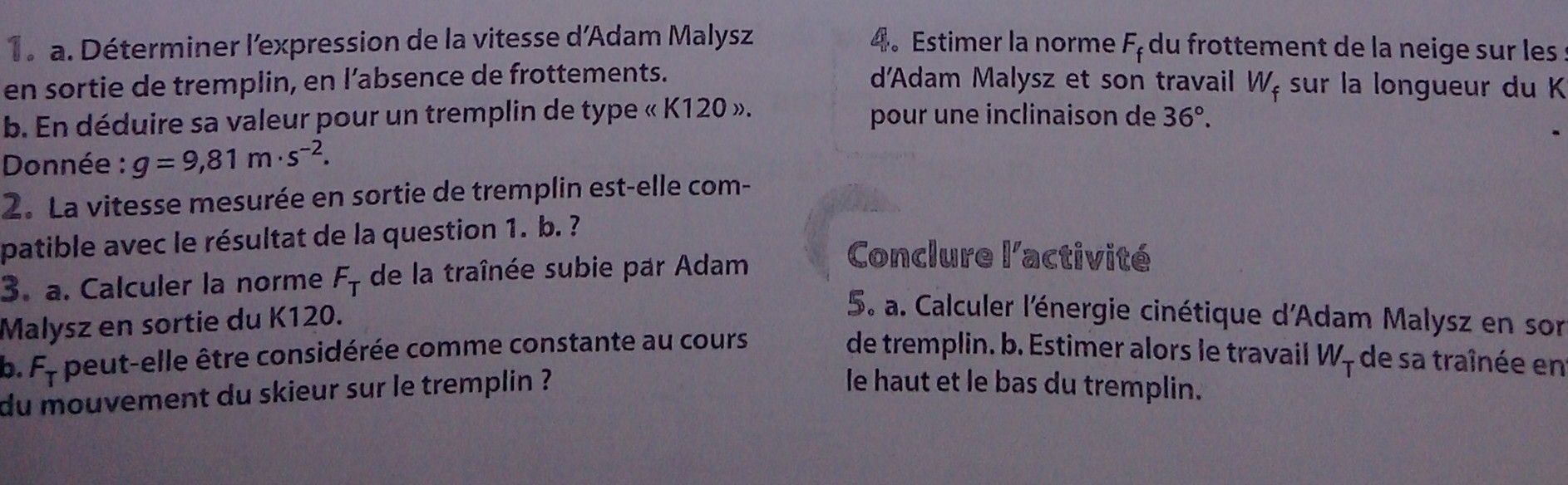 Oui ,c'est bien cela.Maintenant on vous dit que dans un premier temps on considère qu'il n'y a pas de frottement donc que l'énergie mécanique se conserve.Donc Em en haut du tremplin=Em en bas.