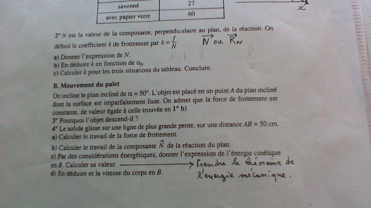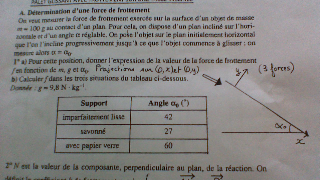 Re: palet glissant avec frottement sur table incline