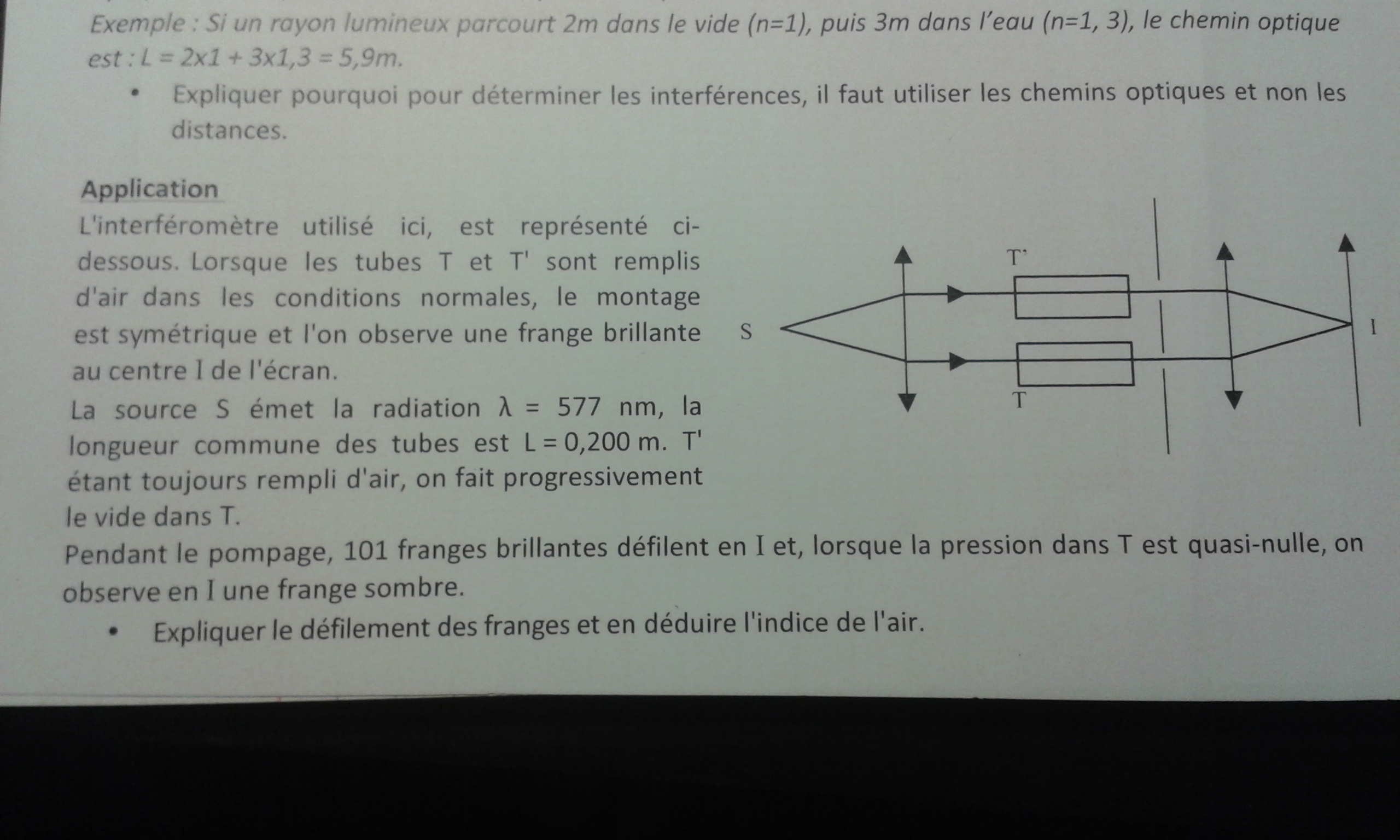 J'ai du mal a expliquer le defilement des franges et je ne vois pas comment en déduire l'indice de l'air.