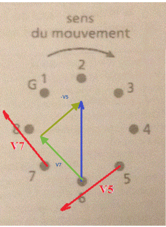 Quelle est la longueur des vecteurs \(\overrightarrow { { V }_{ 5 } }\) et \(\overrightarrow { { V }_{ 7 } }\) sur votre schéma ?