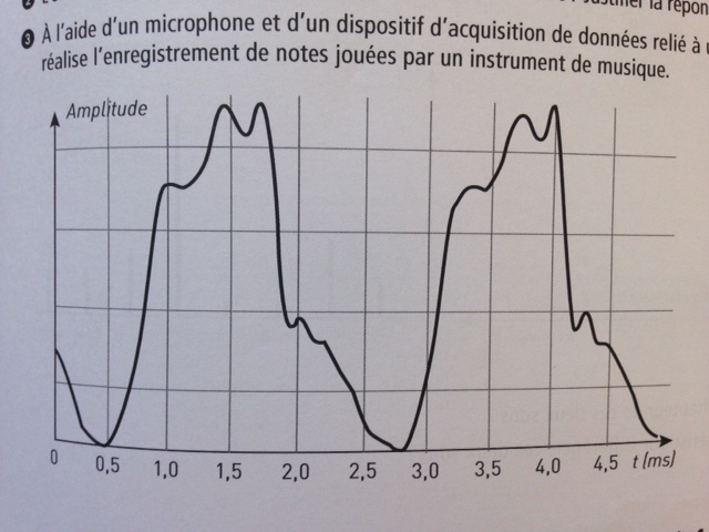 L’énoncé : A l’aide d’un microphone et d’un dispositif d’acquisition de données relié à a un ordi, on réalise l’enregistrement de notes jouées par un instrument de musique.