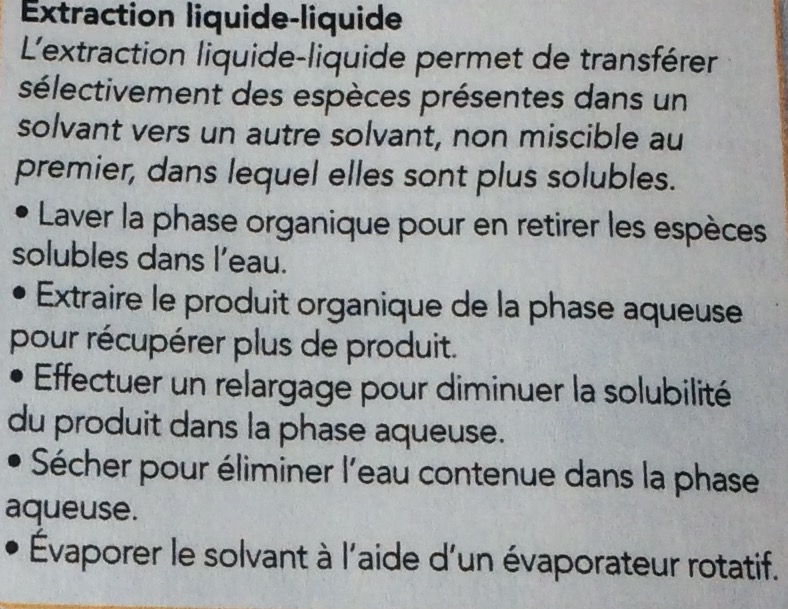J'ai besoin d'aide car je ne comprends l'étape d'extraction liquide-liquide suite à l'obtention d'un produit dans le cadre d'une synthèse organique. Je joints le document en question.